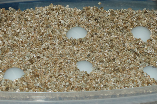 Less than 1 in a hundred turtle eggs laid will hatch and grow into an adult turtle. Unlike birds, turtles do not tend their nests once laid, nor care for their young once they hatch. Once the female has finished laying her eggs she never sees them again. Nests are easily found and destroyed by predators such as raccoons, skunks, foxes and coyotes looking for an early summer meal. The babies that do hatch are vulnerable to predators on land and in the water and few ever reach maturity (8-25 years of age depending on the species).